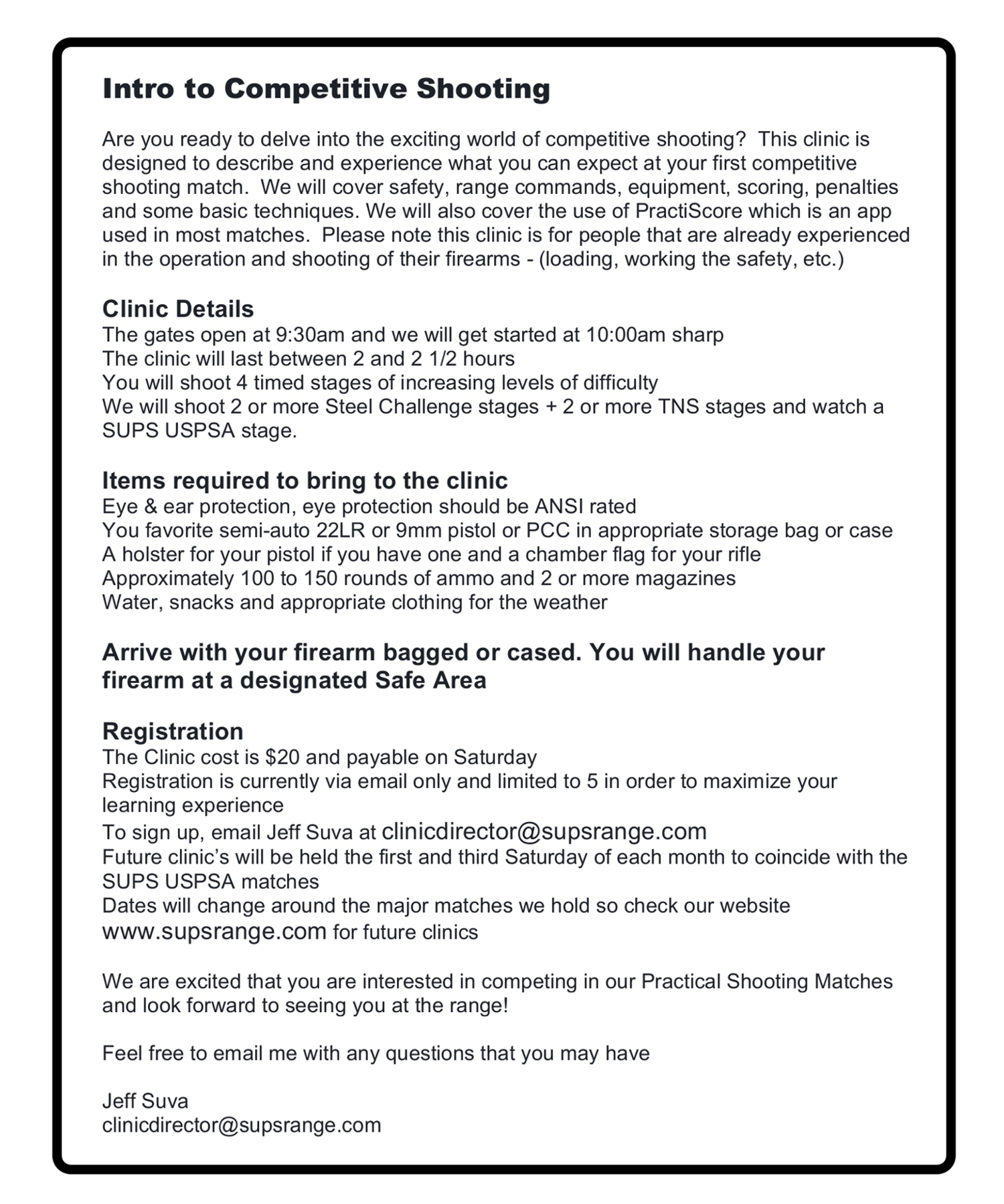 At SUPS we have regular weekly matches along with a USPSA match monthly. We also offer many regular major events for USPSA.